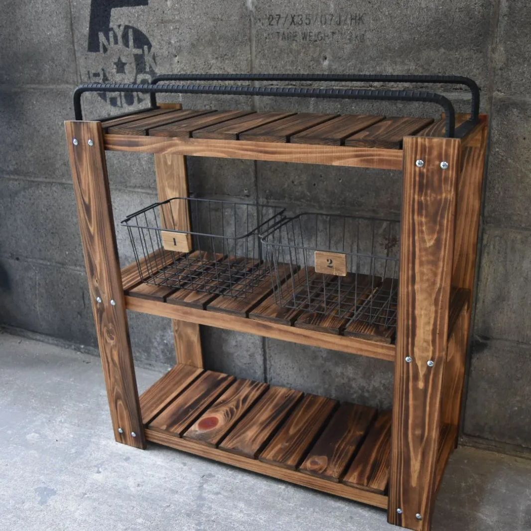 - 棚・ラック・シェルフ > 木製ラック・ウッドラック > 【かごつき】男前インテリア 棚 2台 植物 多肉植物 インダストリアル 911 かごつき】男前インテリア 棚 ×2台 植物 多肉植物 インダストリアル