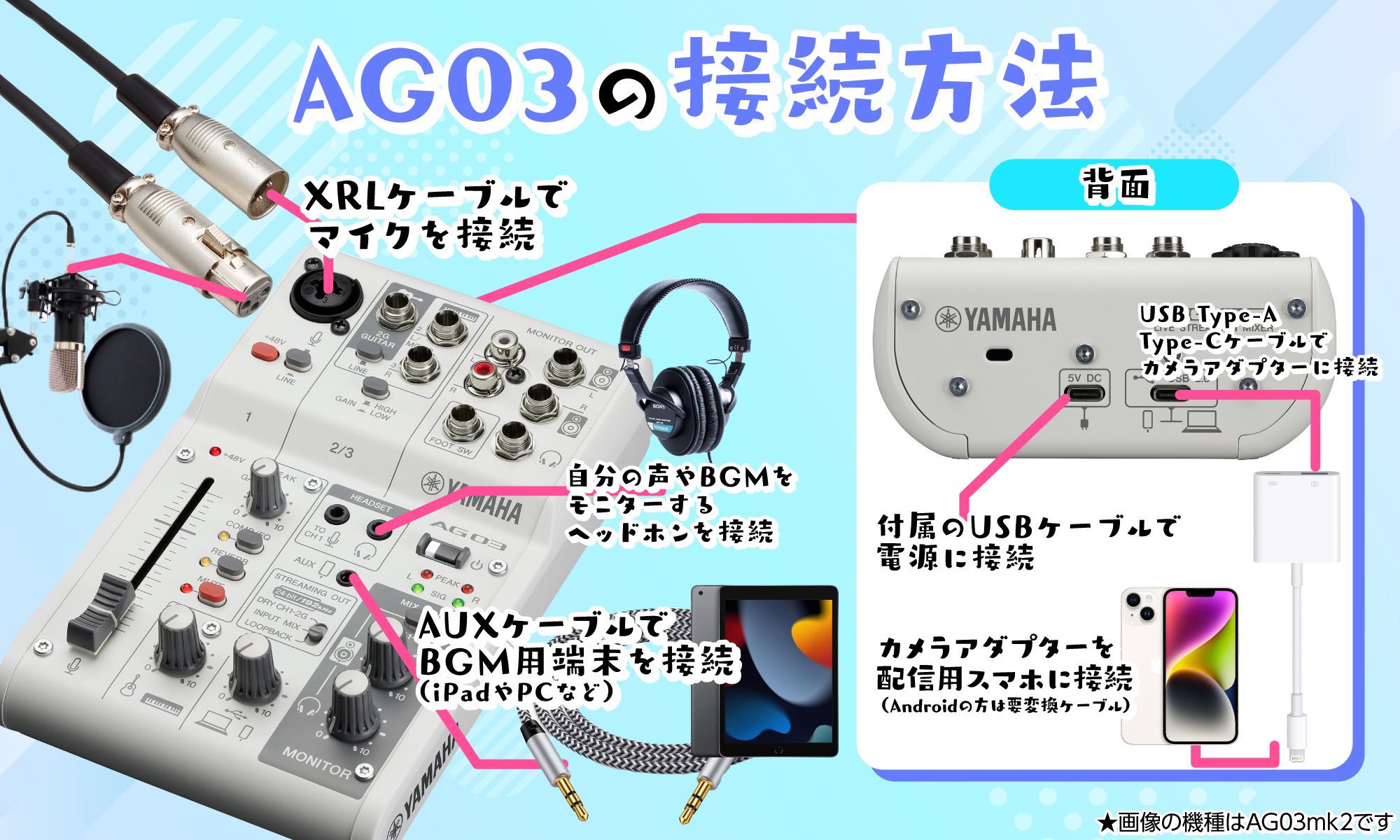 YAMAHA AG03配信機材セット【配信&宅録】IRIAMやYouTube向け YAMAHA AG03配信機材セット【配信&宅録】IRIAMやYouTube向け ヤマハ