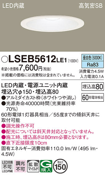 | メーカー | Panasonic LEDダウンライト |