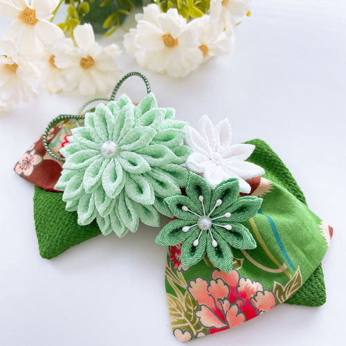 | メーカー | 【再販】【ボヌール/淡緑桃】つまみ細工の髪飾り リボン |