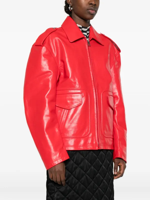 Fiorucci☆子牛革☆leather 短丈“bomber jacket Fiorucci flap-pockets Leather Jacket | Red | FARFETCH