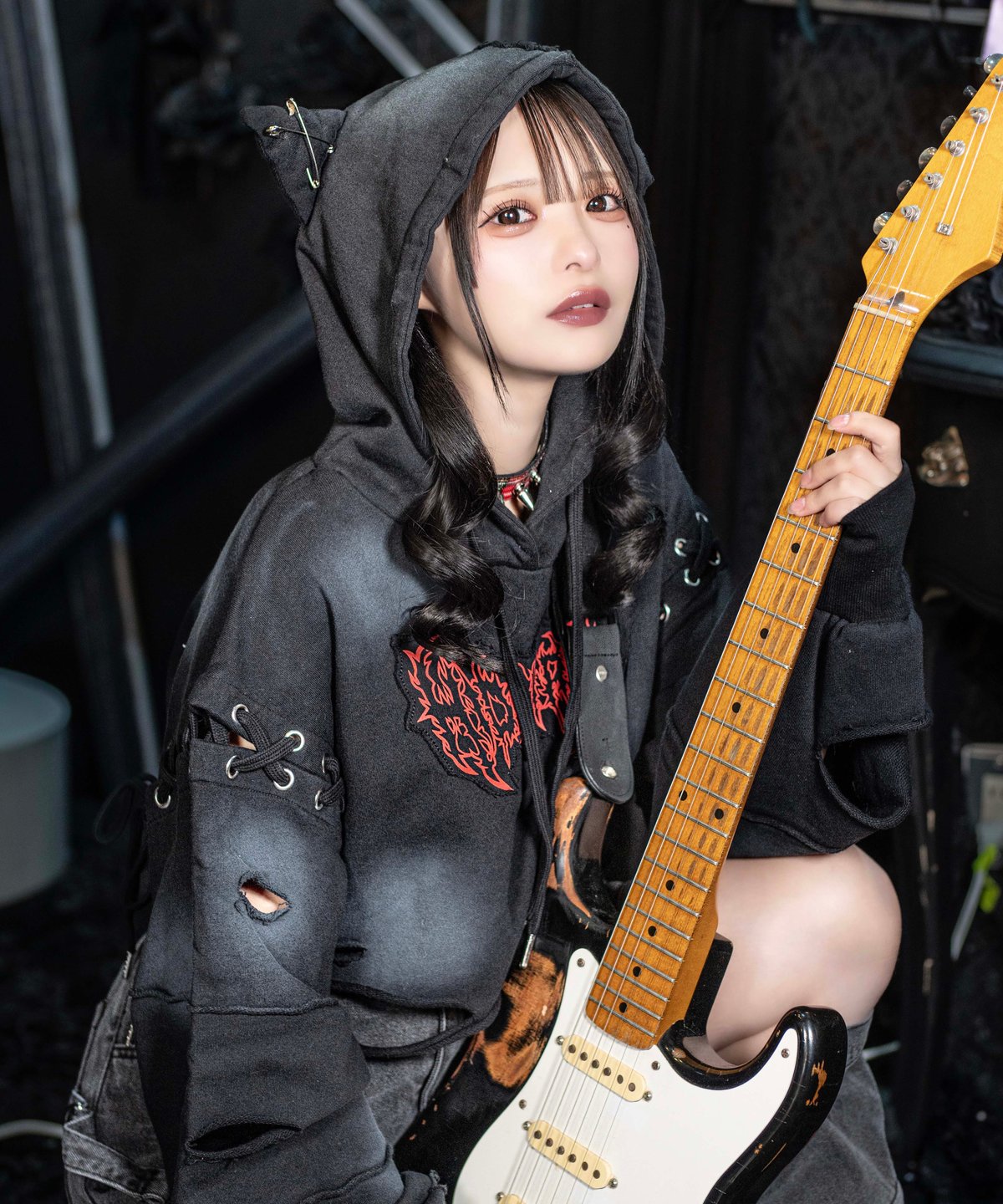 新品未開封 HIDOLATRAL THEODOL ダメージショート猫耳パーカー 再販《ダメージショート猫耳パーカー》BLACK | HIDOLATRAL THEODOL