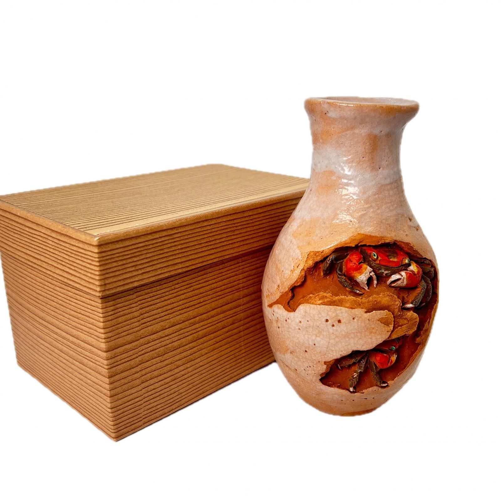 - 美術品・アンティーク・コレクション > 工芸品 > 相馬焼?信楽焼?蟹 カニ装飾の陶器花瓶 置物 アンテリア 相馬焼?信楽焼?蟹 カニ装飾の陶器花瓶 置物 アンテリア 楽山焼 蟹 水