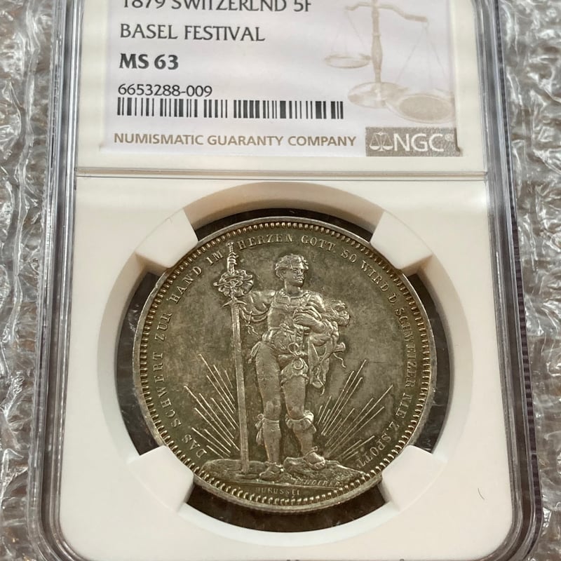 - 美術品・アンティーク・コレクション > コレクション > スイス 5フラン 1936 【NGC MS65】 世界 ⑪ NGC鑑定MS63・レインボートーンあり】1879年 スイス バーゼル 射撃祭 5