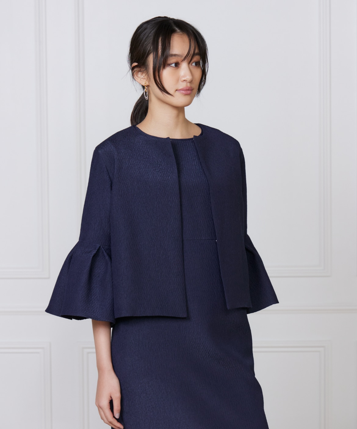 - レディース > ジャケット・アウター > 新品 タグ付き ポリエステルブレンド ハーフスリーブ ジャケット タックフレアースリーブジャケット|7-IDconcept.(セブンアイディ