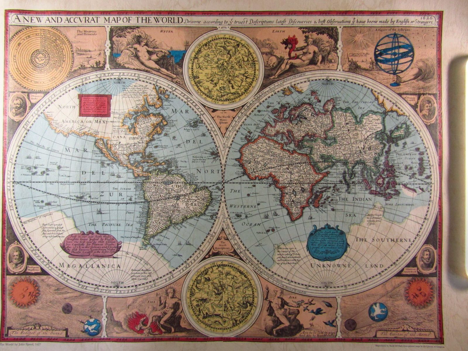 - 美術品・アンティーク・コレクション > コレクション > 1627年 世界地図 古地図ポスター Rand MqNally製 ポスター ジョン・スピード 世界地図 1627年 - メルカリ