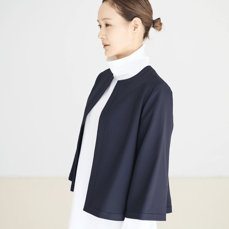 24AW KHOKI ノーカラー フリンジ ウールジャケット 2 ネイビー 24AW KHOKI ノーカラー フリンジ ウールジャケット 2 ネイビー fruits
