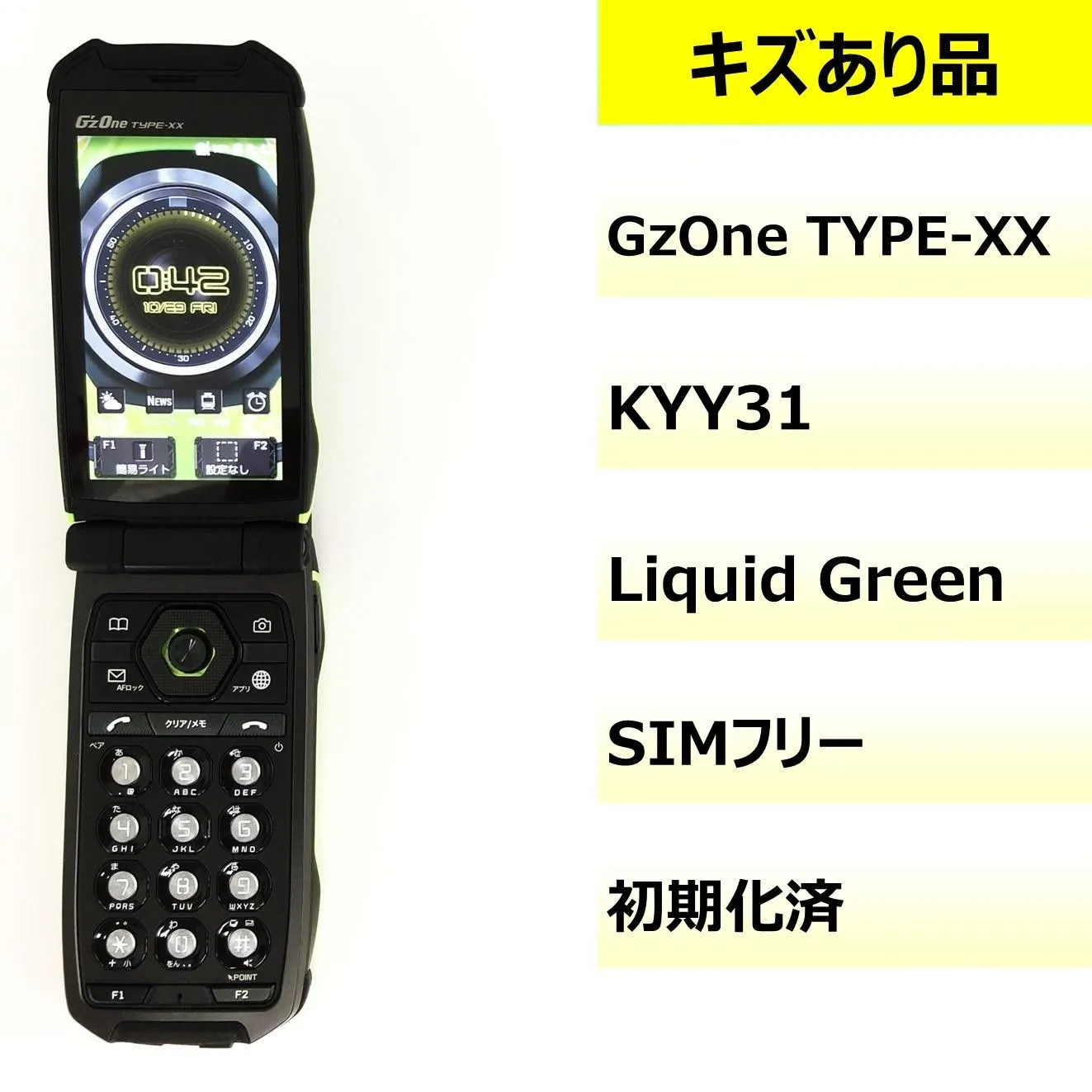 | 商品の特徴 | 希少auガラホ 京セラ G'z One TYPE-XX ブラック美品 取説書付 希少。G'zOne TYPE-XX(ジーズワン タイプダブルエックス) | ケータイをお。希少auガラホ 京セラ G'z One TYPE-XX ブラック美品 取説書付 京セラ G。2、3年前にauショップにて機種変更で購入し、今年の3月まで使っていましたが、ソフトバンクにキャリア変更して使わなくなったため出品します。大事に使っていたため落下や目立つ傷もなく、個人的には綺麗な方だと思いますが、主観的なものであるため写真で判断お願いします。防水・防塵・耐衝撃ですが水没歴なし。この一つ前の機種から使っていましたが、バイク走行中にポケットから落ちてしまい朝通勤中の何台もの車に踏まれていきましたが、普通に使えたタフさが気に入っていました(当然表面は傷だらけになりましたが笑)SIMロックは関係ない機種のようです。取り扱い説明書付き、使い倒すつもりだったので箱なし。メイン画面やサブ画面、ボタンのバックライト、カメラやボタン等に不具合なし。充電器はUSBタイプCで別売りです。。G'zOne TYPE-XX ブラック 携帯電話本体 ガラケーi88 京セラ G'zOne。かんたん携帯11 SHARP A207SH ゴールド。WALKMANケータイ W42S 【未使用 白ロム】。Redmi Note 11 Pro 5G 本体 アトランティックブルー。Apple iPhone12 128GB 本体 美品傷なし。【新品未開封】Samsung Galaxy A25 5G 本体 ブラック。Apple iPhone 14 plus 美品 ホワイト 本体 128㎇ | ||