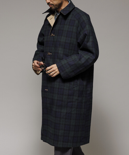 - レディース > ジャケット・アウター > 【新品】BLAMINK タータンチェック ステンカラーウールコート 男女兼用48 セール】リバーシブル ウール混 フランネル チェック バルマカーン