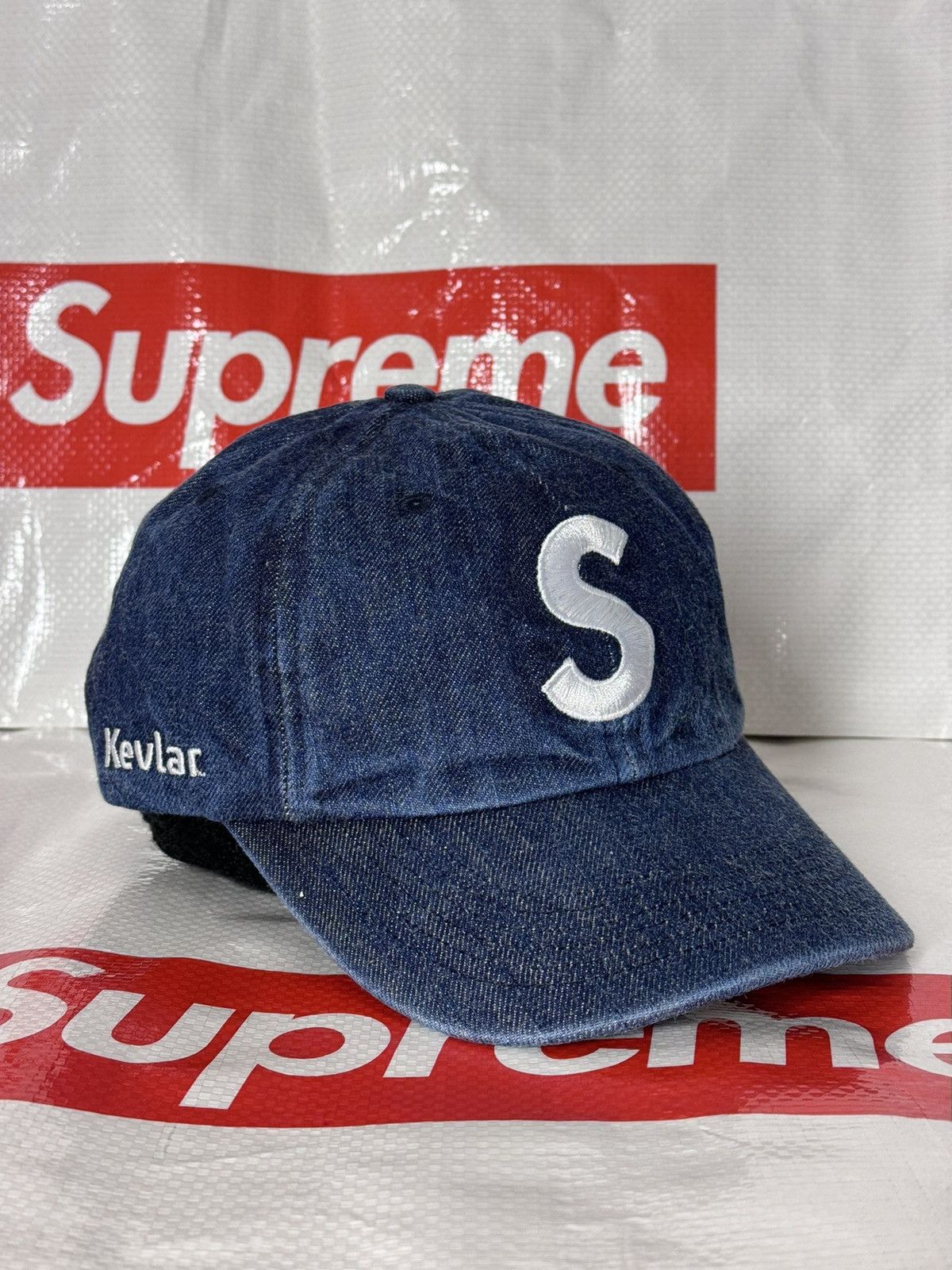 帽子 Supreme - Kevlar Denim S Logo 6-Panel Supreme Kevlar denim s logo 6 panel camp cap ss 22