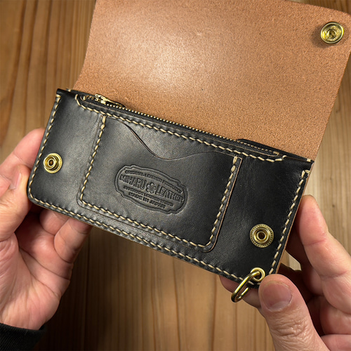黒*げ様 昭南本ヌメ革 ロングトラッカーウォレット 丘染めブラック茶芯|02 昭南本ヌメ革 ロングトラッカーウォレット 丘染めブラック茶芯|TWL01